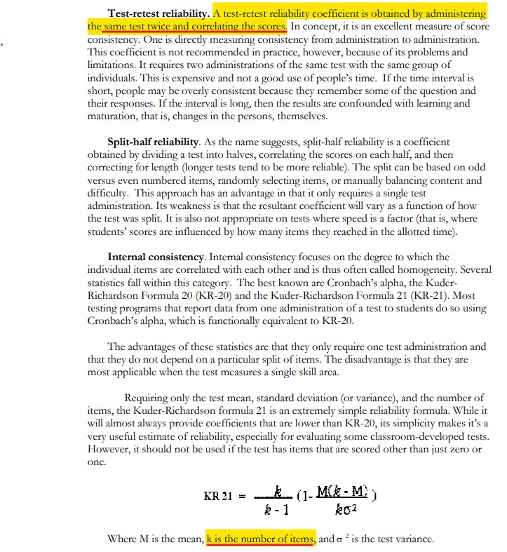 We researched this comment and came up with the following to verify the veracity about “reliability” in the following passage on page 18 from “What Teachers Need to Know About Assessments” published by the National Education Association.: