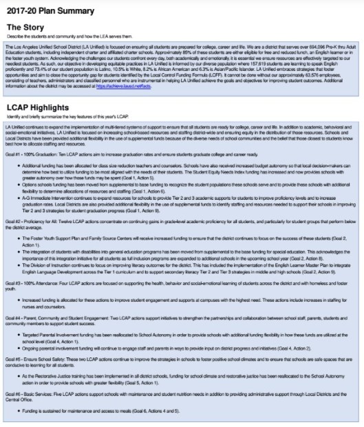 Consider two of those original intentions the state’s framers had for the LCAP — and whether LAUSD’s LCAP lives up to them.
