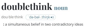 “Doublethink means the power of holding two contradictory beliefs in one’s mind simultaneously, and accepting both of them.” ― 1984
