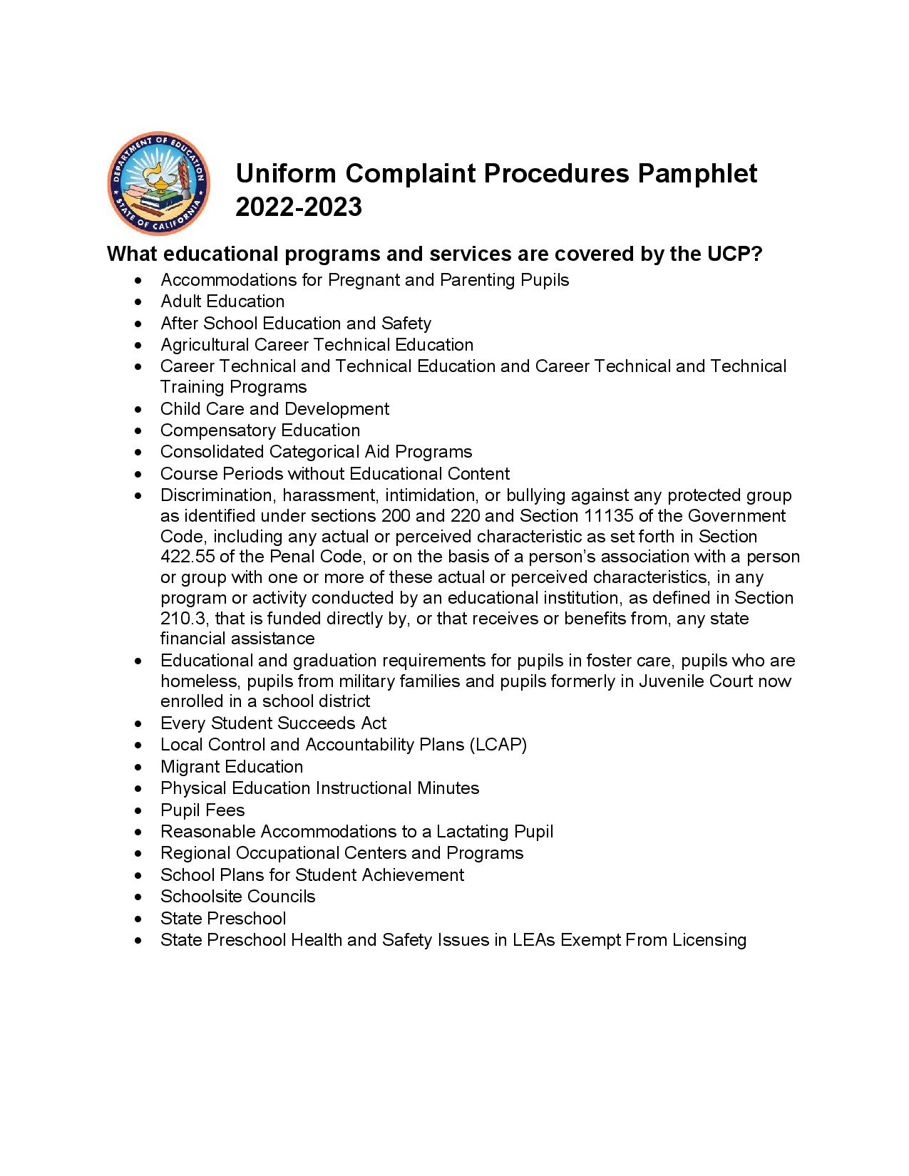 What you read from the CDE in the Preface are the official instructions for filing a LEA (Local Education Agency – the School District) UC, one of the the primary methods of holding a LEA to Honesty, Accountability and Transparency for its misdeeds in the following areas: