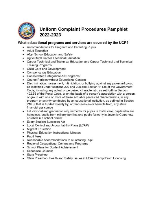 Last Sunday we provided our readers with “the most recent Uniform Complaint Procedure Handbook dated December 2, 2022 by the California Department of Education (CDE)” as a prep for the recommendations we will be making to help each and every one of you to “fight” for the educational rights of your Students. If you have not yet read through that document, please click on the link in red above and do so now before proceeding.