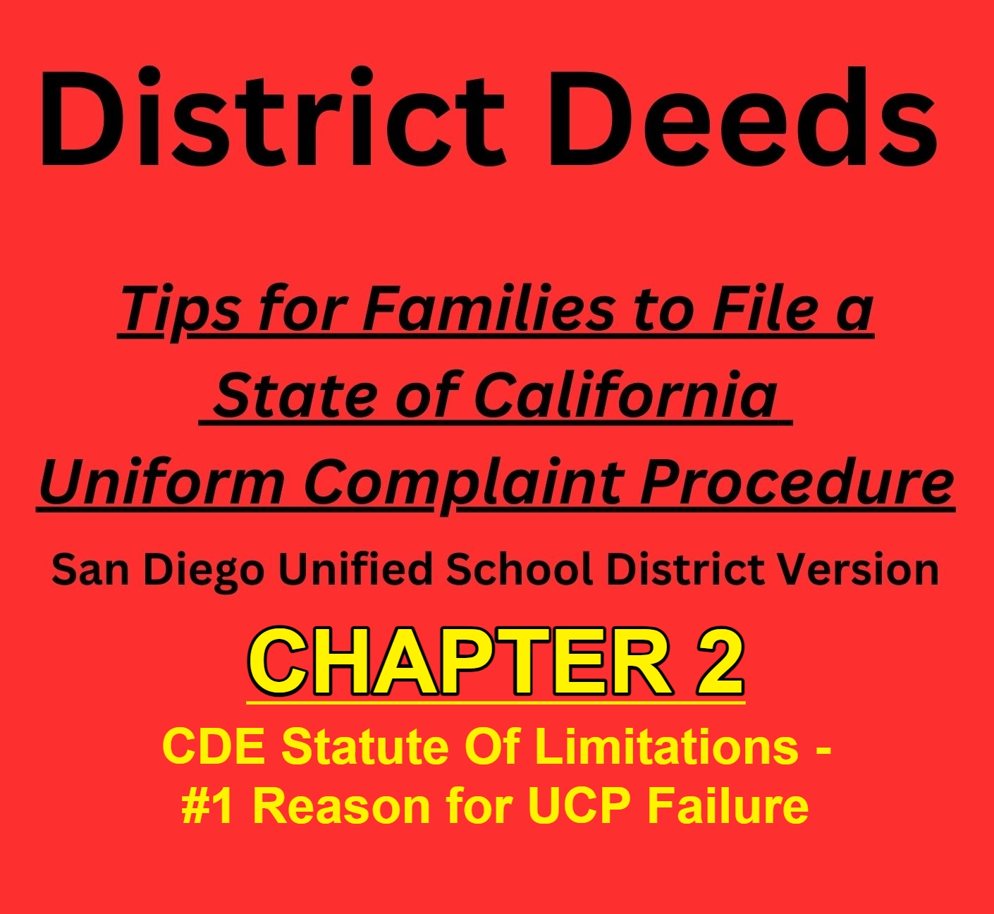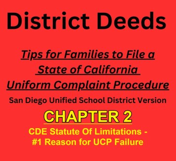 This week we continue with our 2023 HAT Trick Resolution of holding the San Diego Unified School District (SDUSD) to FULL Honesty, Accountability, Transparency with the District Deeds HAT TRICK Handbook Chapter 2: “CDE Statute Of Limitations – #1 Reason for UCP Failure”.