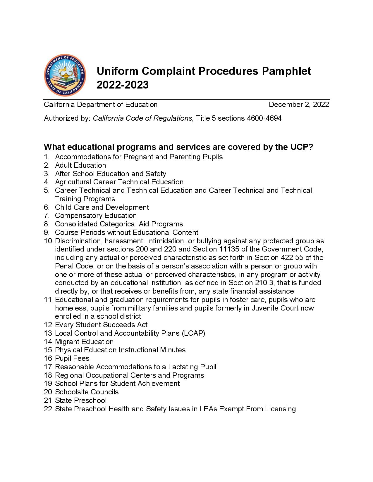 To get the full background and chapters of our Uniform Complaint (UC) Handbook initiative, please review the previous entries for this handbook: