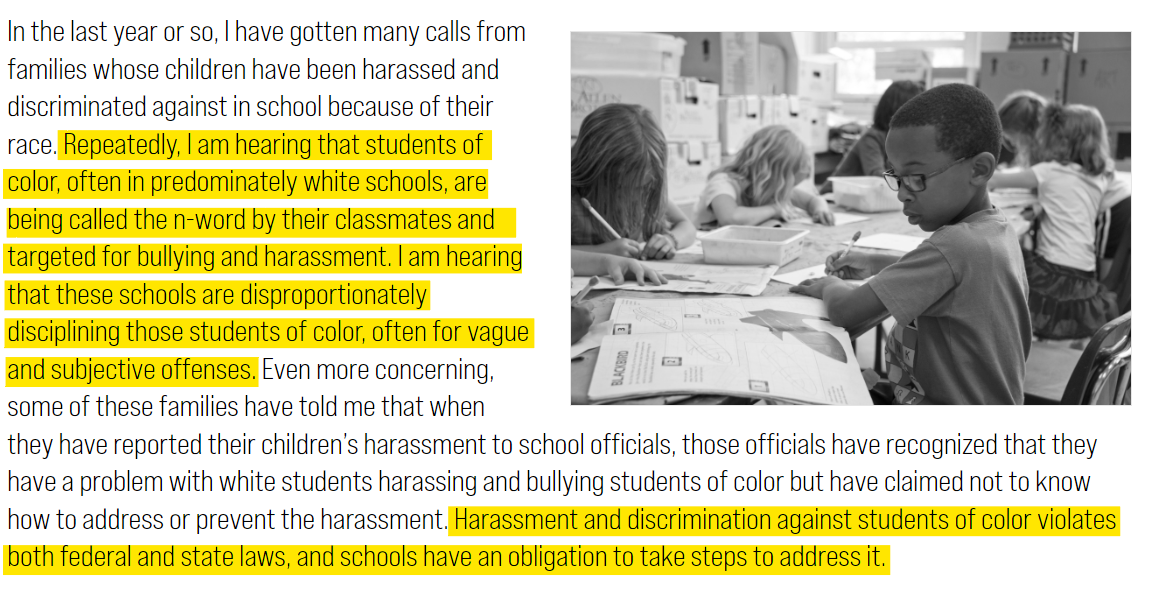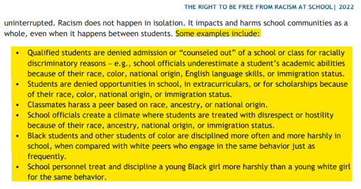 Example: “counseled out”, Denied opportunities, uneven/harsh Discipline