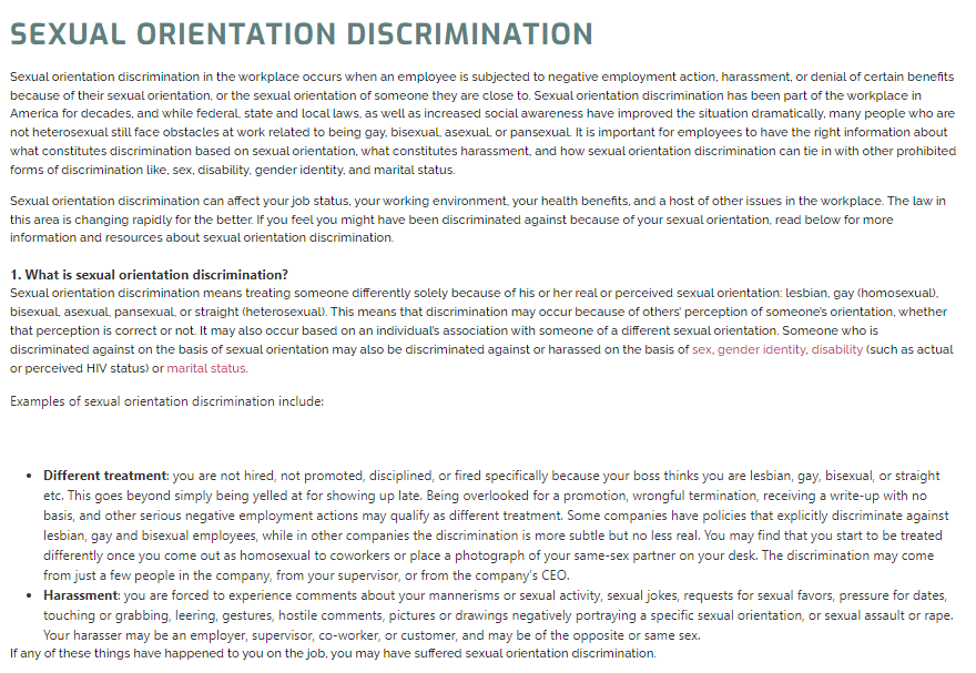 Title: SEXUAL ORIENTATION DISCRIMINATION