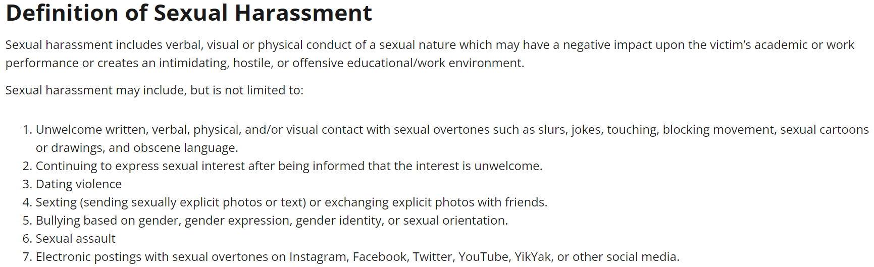 Title: Definition of Sexual Harassment – Title ix