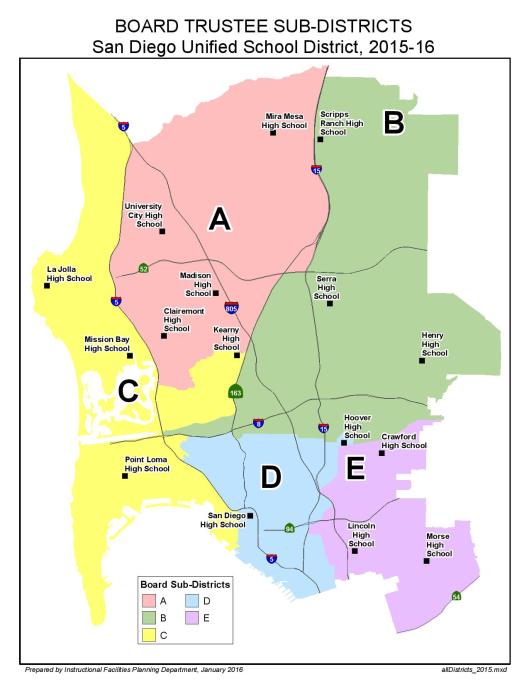 - Your SDUSD Board of Education Trustee according to the map below: