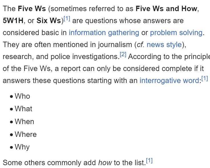 - If you are adding supporting evidence to your complaint, some of that information may not contain all of these 5W1H components but feel free to add any and all of that information to support your complaint. Remember, INCLUSIVE, not EXCLUSIVE!
