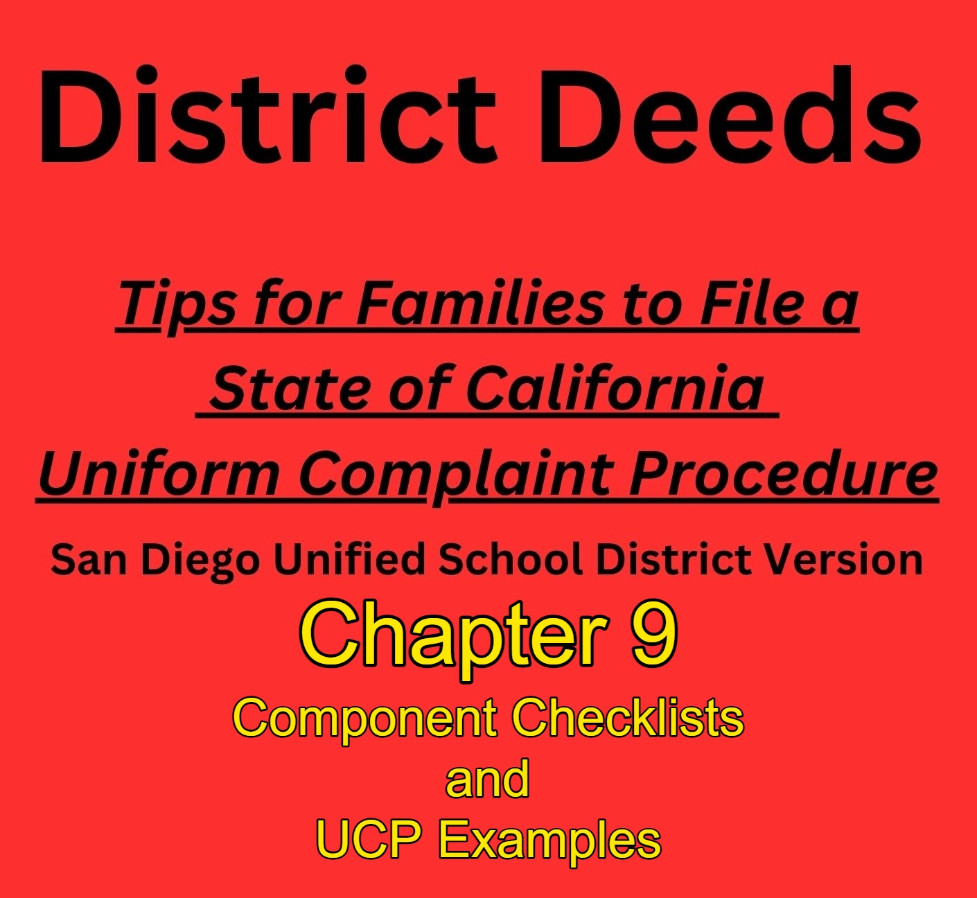 - Your family has been injured by the San Diego Unified School District, go to the District Deeds Complaint Forms page to find instructions to fight for your Civil Rights!