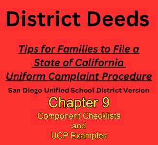 In this chapter we will cover the full review of your Uniform Complaint (UC) via suggested checklists and offer a complaint narrative example from an actual UC submitted to both the SDUSD and thew California Department of Education (CDE).