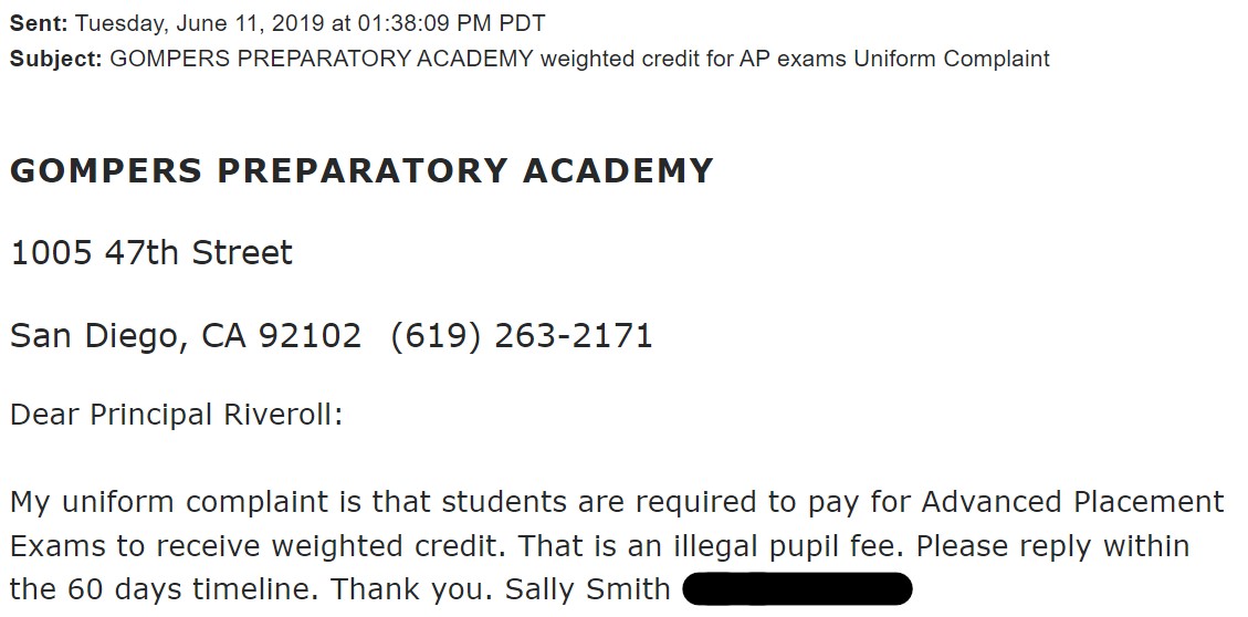 - If a counselor is “cc’d” include them. If the attendance clerk in the front office is involved, include them. Casting a wide net forces the SDUSD and CDE to actually investigate rather than dismiss your UC with no effort.