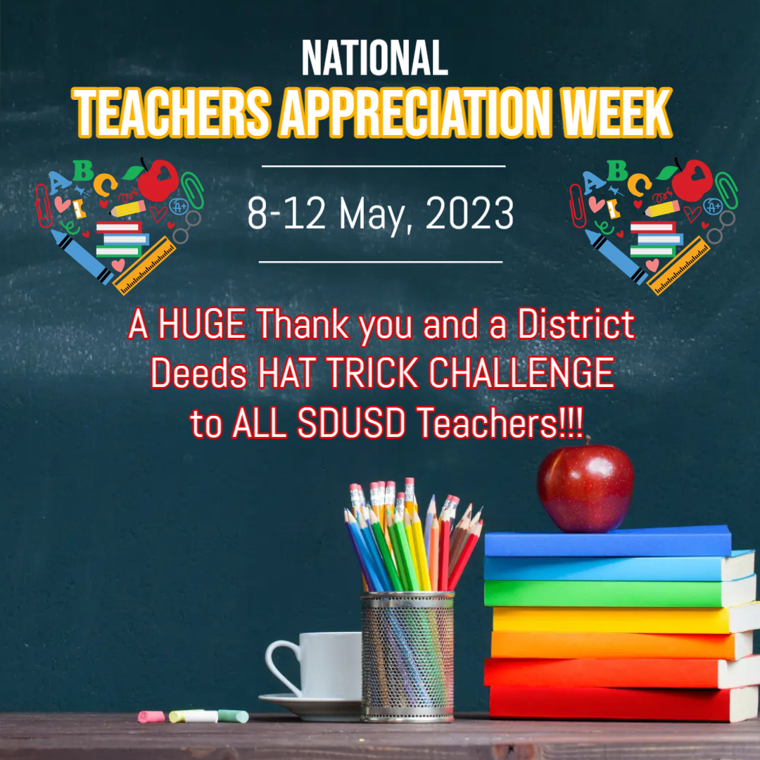 In the spirit of SDUSD Stakeholder solidarity on National Teacher Appreciation Week 2023, we are reaching out to ALL SDUSD Teachers and Educational Support Staff to join our San Diego Unified 2023 “HAT Trick” Resolution of FULL Honesty, Accountability and Transparency!!!