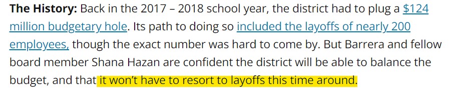 No layoffs, 15% raises AND drastically reduced housing for Teachers making over $57k/yr while implementing a vast reduction in services provided to impoverished SDUSD Families to balance his corrupt budget. with the help of trustee lackeys, on the backs of the neediest SDUSD communities.