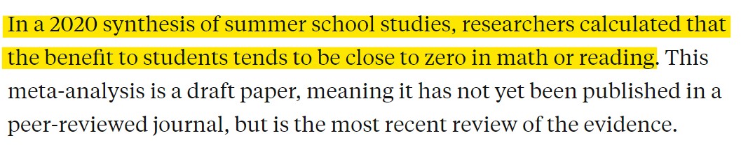 PROOF POINTS: Slim research evidence for summer school