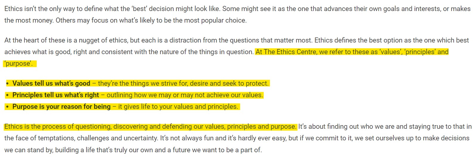According to “The Ethics Center” website, here is the meaning of “Ethics”:
