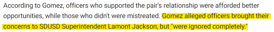 But the strangest thing regarding SDUSD “ethics” is that the current SDUSD Superintendent Lamont “Crybaby” Jackson and his senior staff “ignored completely” the claims of the majority of SDUSD Police Officers.