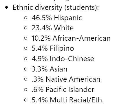 One last point that we are compelled to make. Here is the ethnic diversity enrollment of the SDUSD straight from their own website: