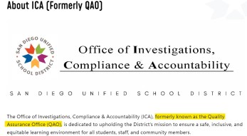 Isn’t it a coincidence that the NEW QAO department where ALL SDUSD Stakeholders are to file complaints is now called ICA?