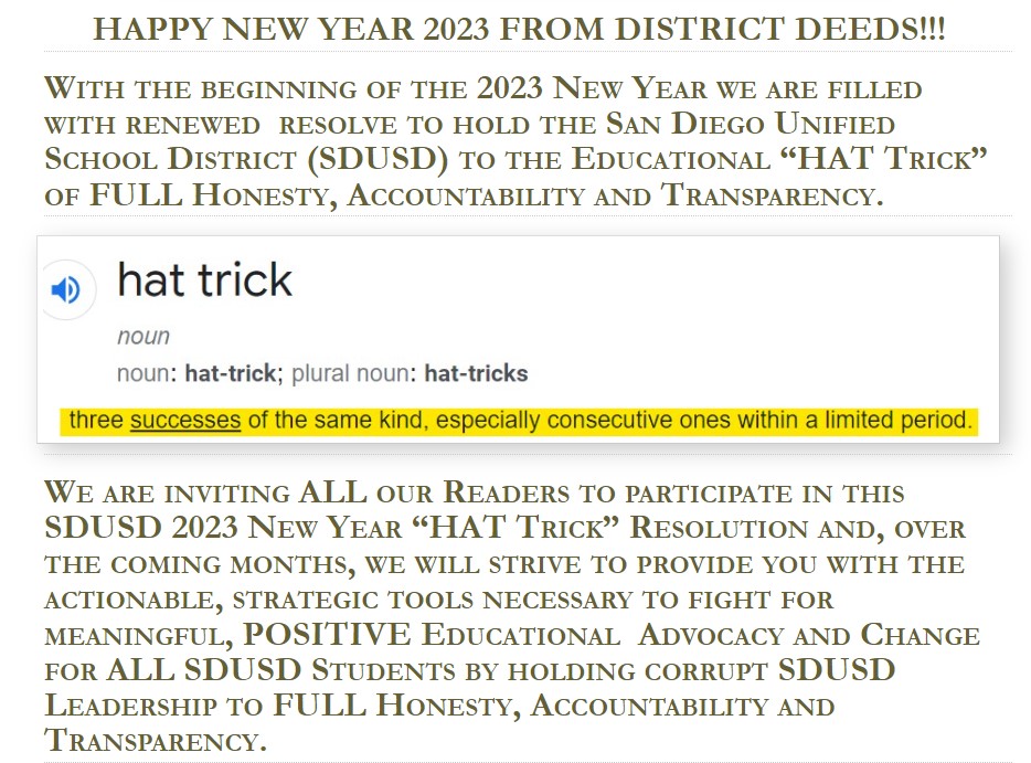 Happy New Years Eve 2023 to ALL our readers and to ALL the San Diego Unified School District (SDUSD) Stakeholders!!!