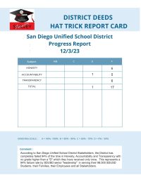 The final initiative for 2023 in November and December was the District Deeds HAT Trick Survey where we received grades from our readers for the SDUSD level of Honesty, Accountability and Transparency .