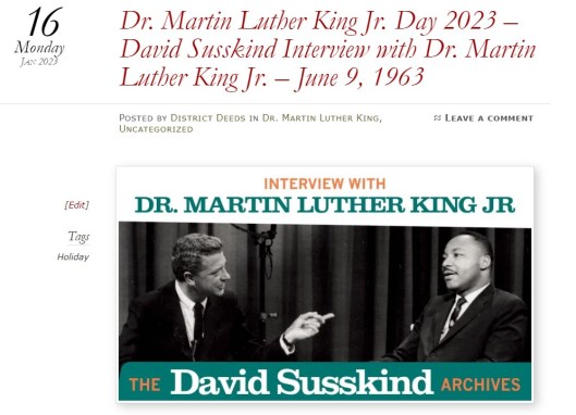 Dr. Martin Luther King Jr. Day 2023 – David Susskind Interview with Dr. Martin Luther King Jr. – June 9, 1963